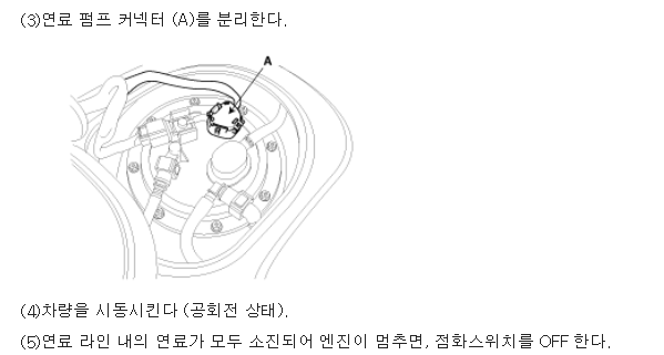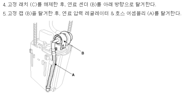 정비매뉴얼은 아주 건조하게 설명하고 있지만 생각보다 쉽지는 않다. 특히 앗세이에서 뭔가 분해해서 탈거하면 그 자리에 고무 O링이 있는 경우에 반드시 O링을 챙겨서 재사용해야 한다. 안 그럼 나중에 연료 압력이 O링이 누락된 부분에서 새기 때문에 일발 시동이 안 걸린다.