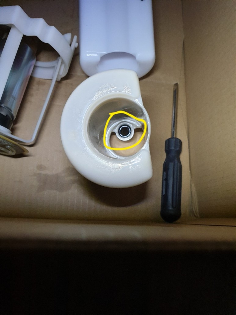 교체 후에 시동을 거는데 몇 번씩 크랭킹을 해도 안 걸린다. 어이구, 뭔가 잘못했다 보다. 쓰레기통에 버린 구 필터를 다시 찾아서 요리조리 살펴보니 어머나 연료 모터 결합부에 들어가는 O링을 놓쳤다.