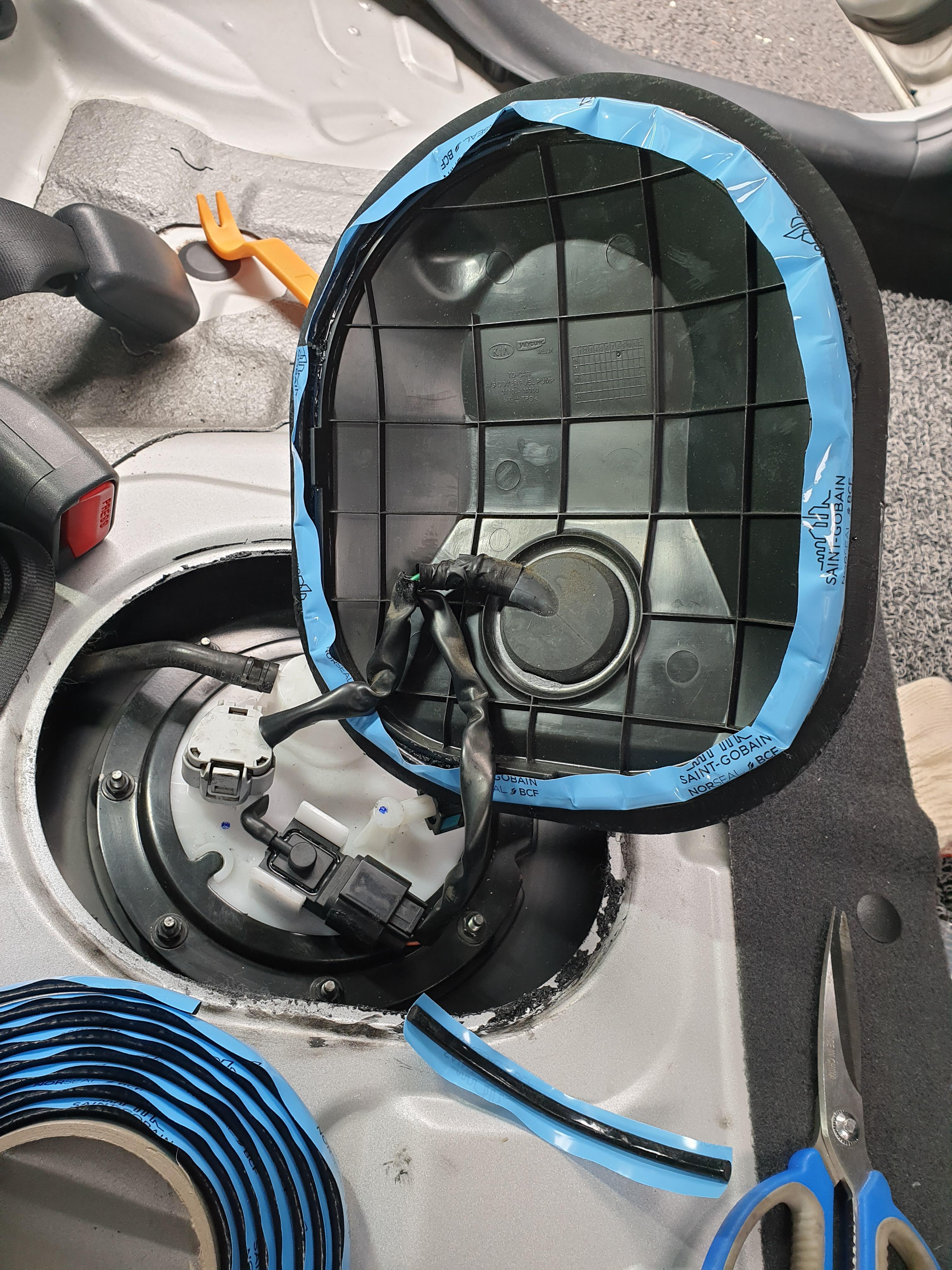 1차로 연료 필터만 교체한 후에 시동이 빌빌 거려서, 2차로 연료 펌프 어셈블리로 교체했었다. 이때 서비스 커버를 탈착 했다가 원래 붙어 있던 검은색 끈끈이(실리콘 또는 본드의 일종)의 접착력이 많이 떨어진 상태에서 그대로 덮고 말았다. 접착력이 떨어진 이유는 연료 호스 라인 분리할 때 휘발유가 확 뿜어져 나오면서 여기저서 튀었는데 끈끈이에 휘발유가 묻으니 끈끈이 일부는 녹았고 접착력도 많이 떨어지더이다.