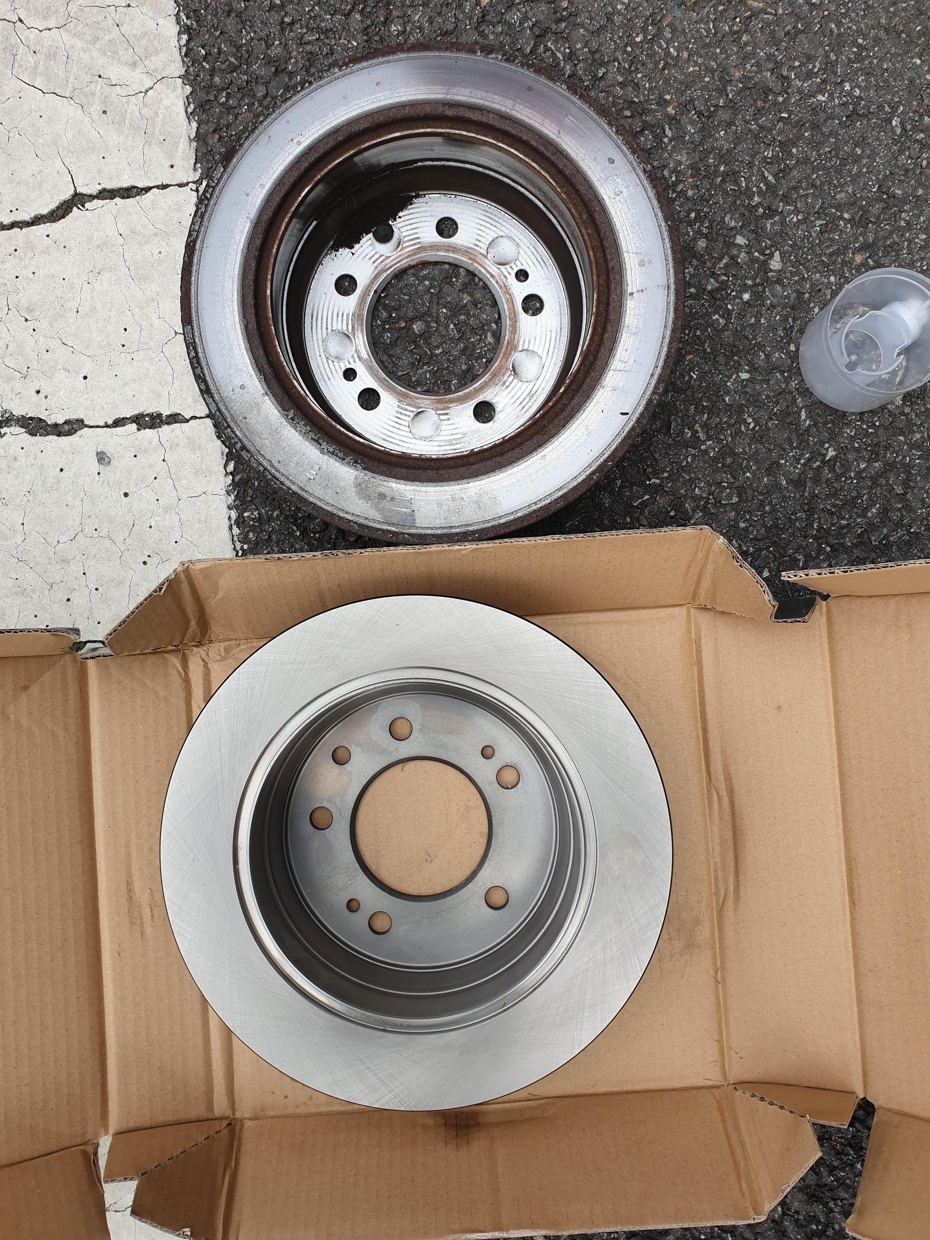 며칠 후 리어 디스크 로터를 내 눈으로 확인하니 음... 디스크 로터 표면 마모 상태가 불량하다. 연마를 해서 써도 되는데 연마하는 비용이 보통 개당 2.5만 원인데 이 가격이면 비품으로 신품 디스크 로터를 살 수 있다. 교체를 하자구.