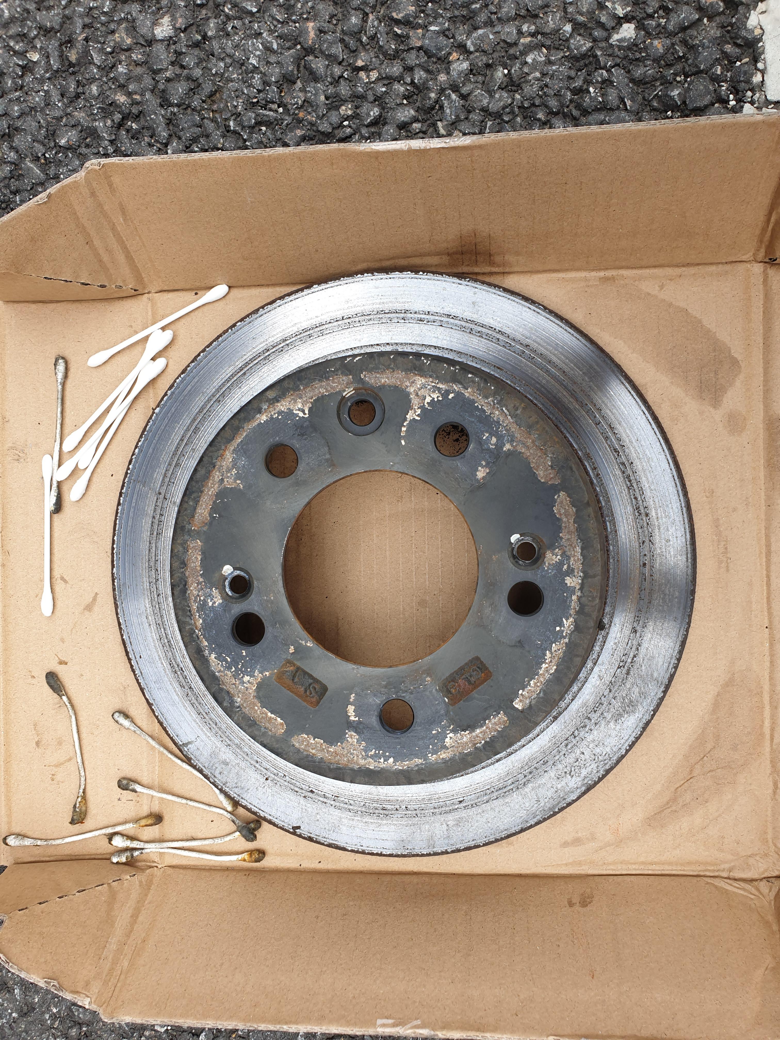 탈거한 로터에서 고무 패킹(사이드 브레이크 장력 조절하는 구멍)을 빼서 신품 로터에 이식하는 것도 잊지 말자.