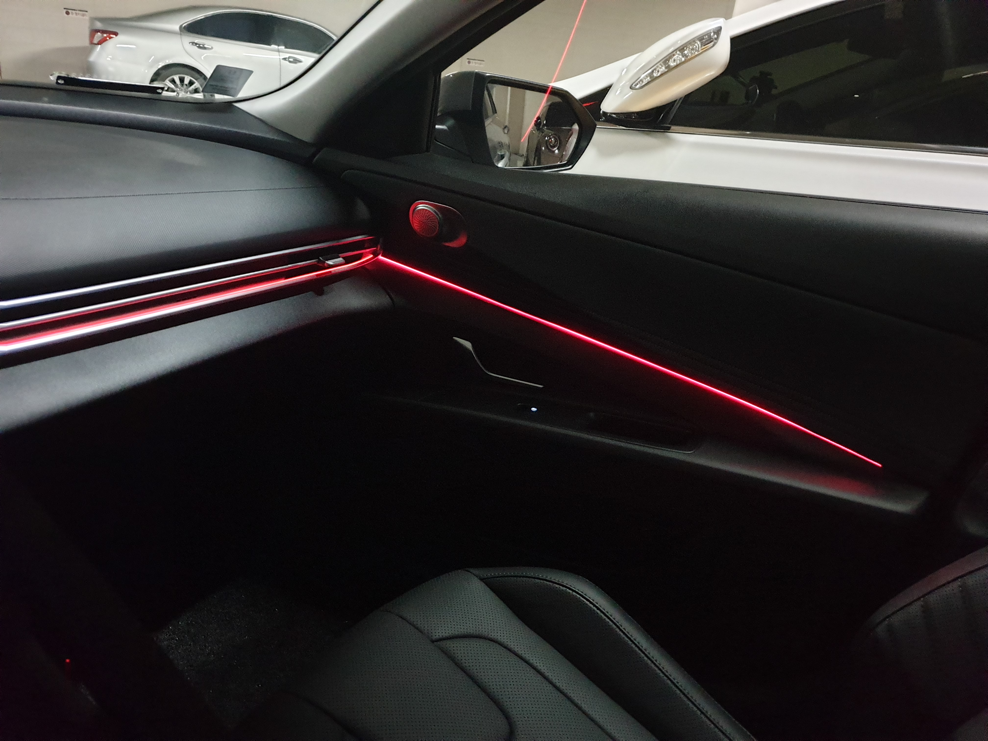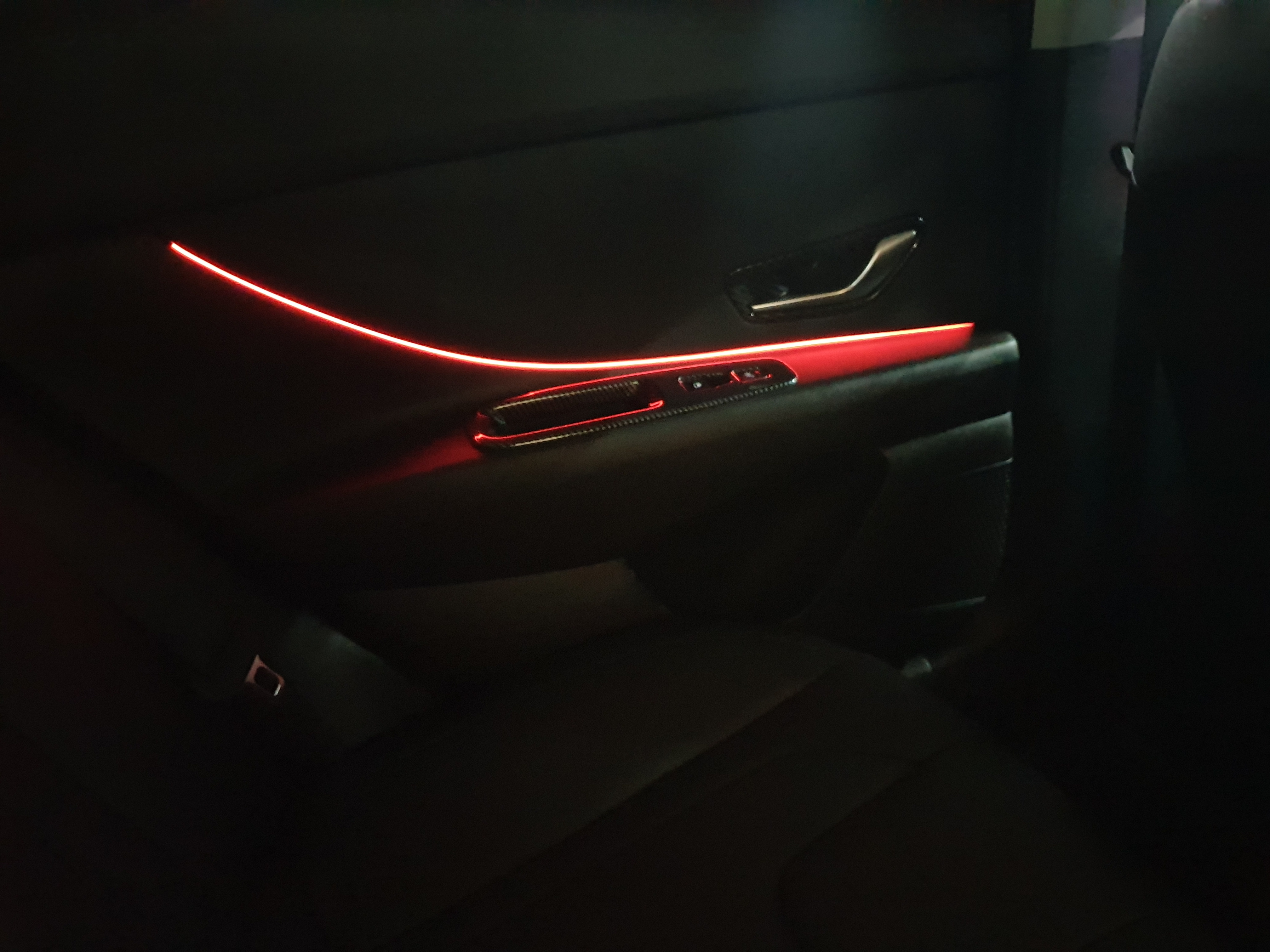 순정 앰비언트는 대시보드를 가로지르면서 1줄만 딱 설치되어 있다. 이게 뭔가 부족하다 싶어서 각 도어 트림까지 연장시켜 앰비언트 램프가 차 내부 전체를 감싸는듯한 형태로 사제 작업이 가능하다. 돈만 주면 뭐는 못하겠냐.
