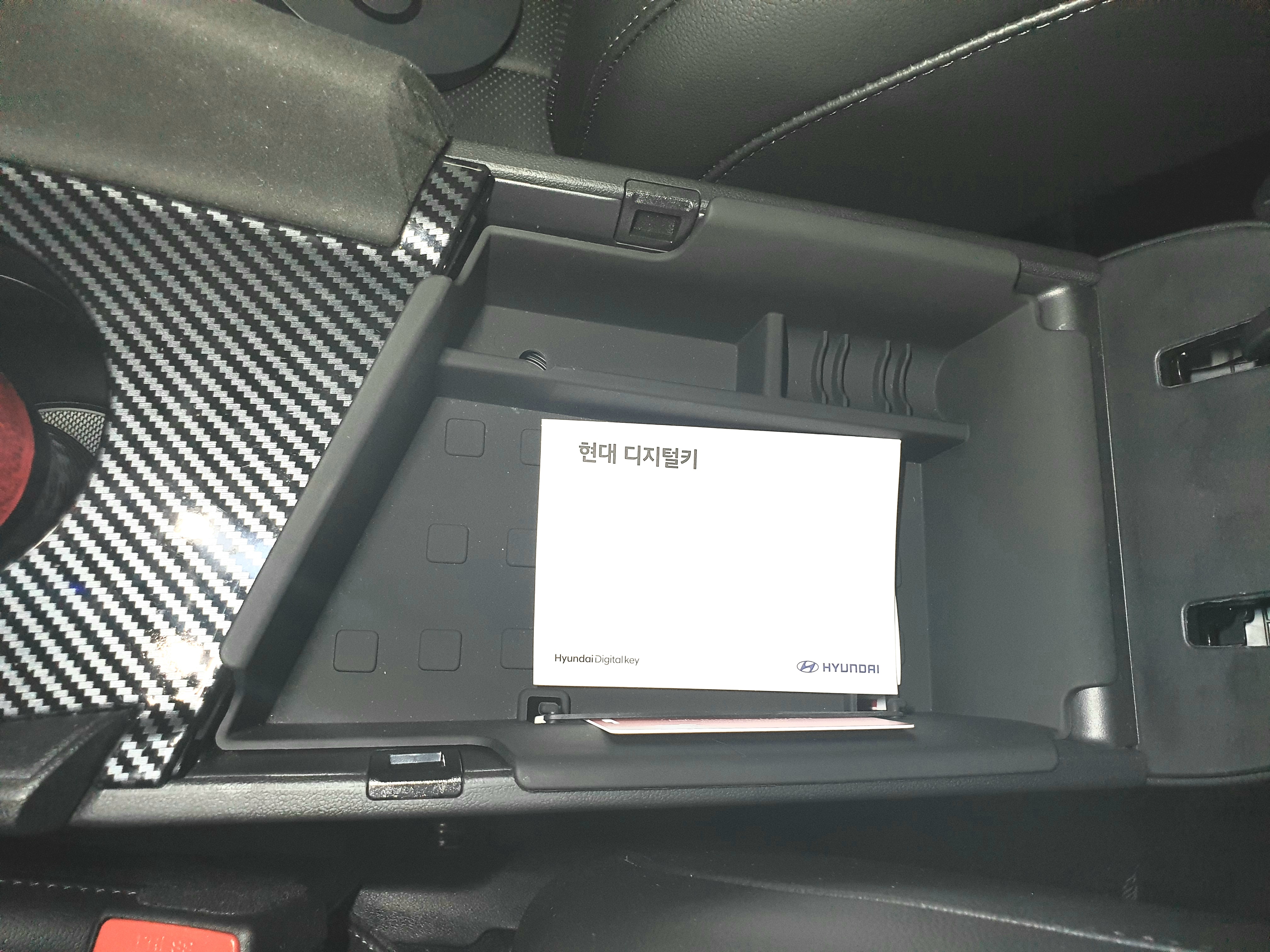 간단하게 전용 콘솔 트레이를 끼워 주면 해결된다. 전자식 파킹 브레이크가 있는 CN7은 콘솔 내부에 USB 포트가 있는데 일부 제품은 USB 포트 사용이 어려운 구조로 된 콘솔 트레이가 있으니 잘 살펴보고 구입한다.