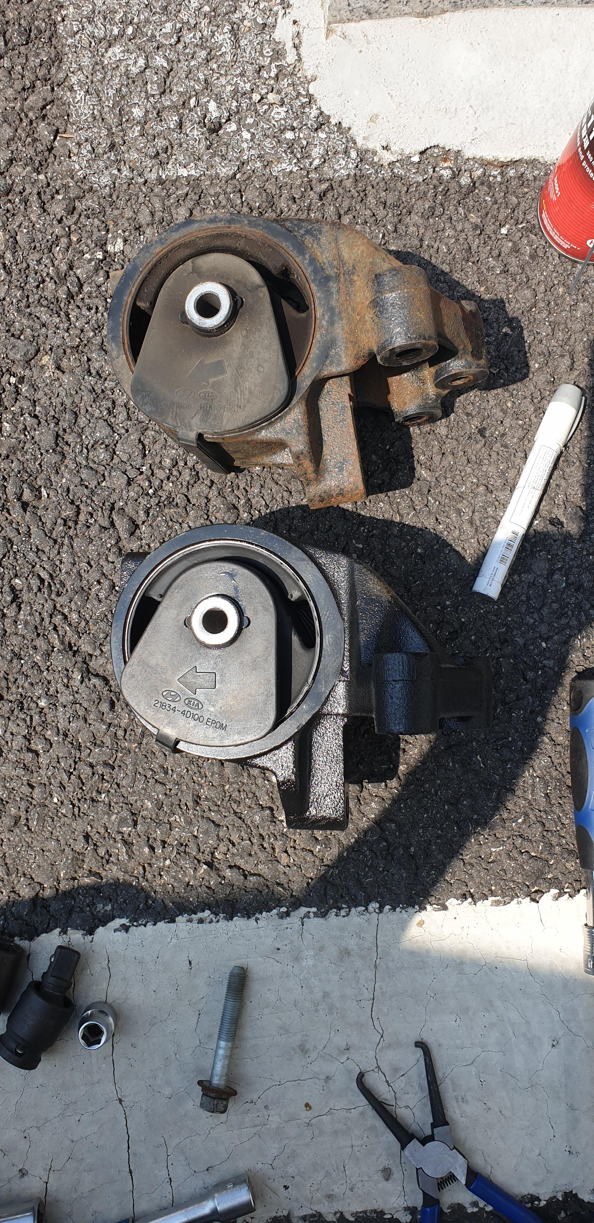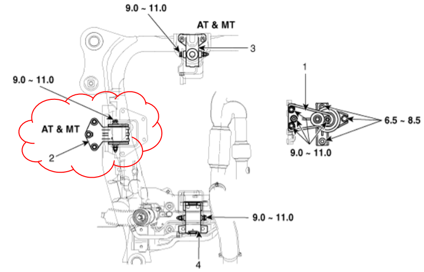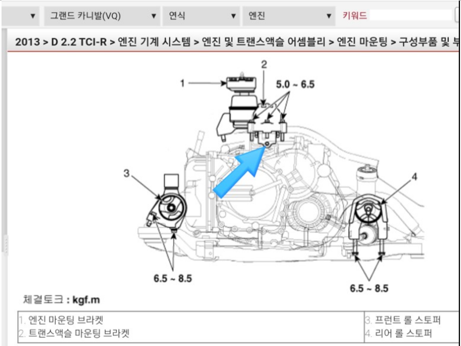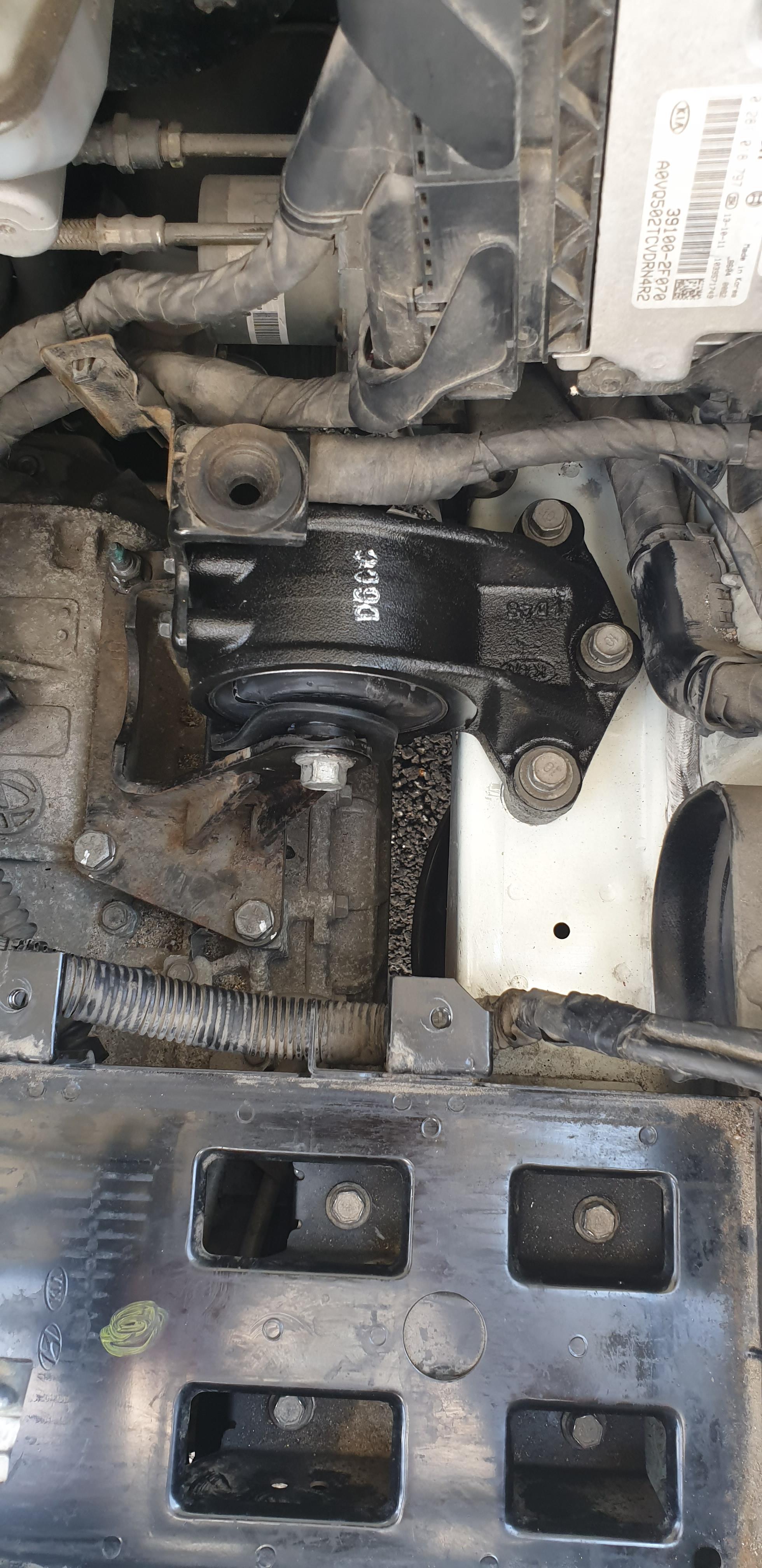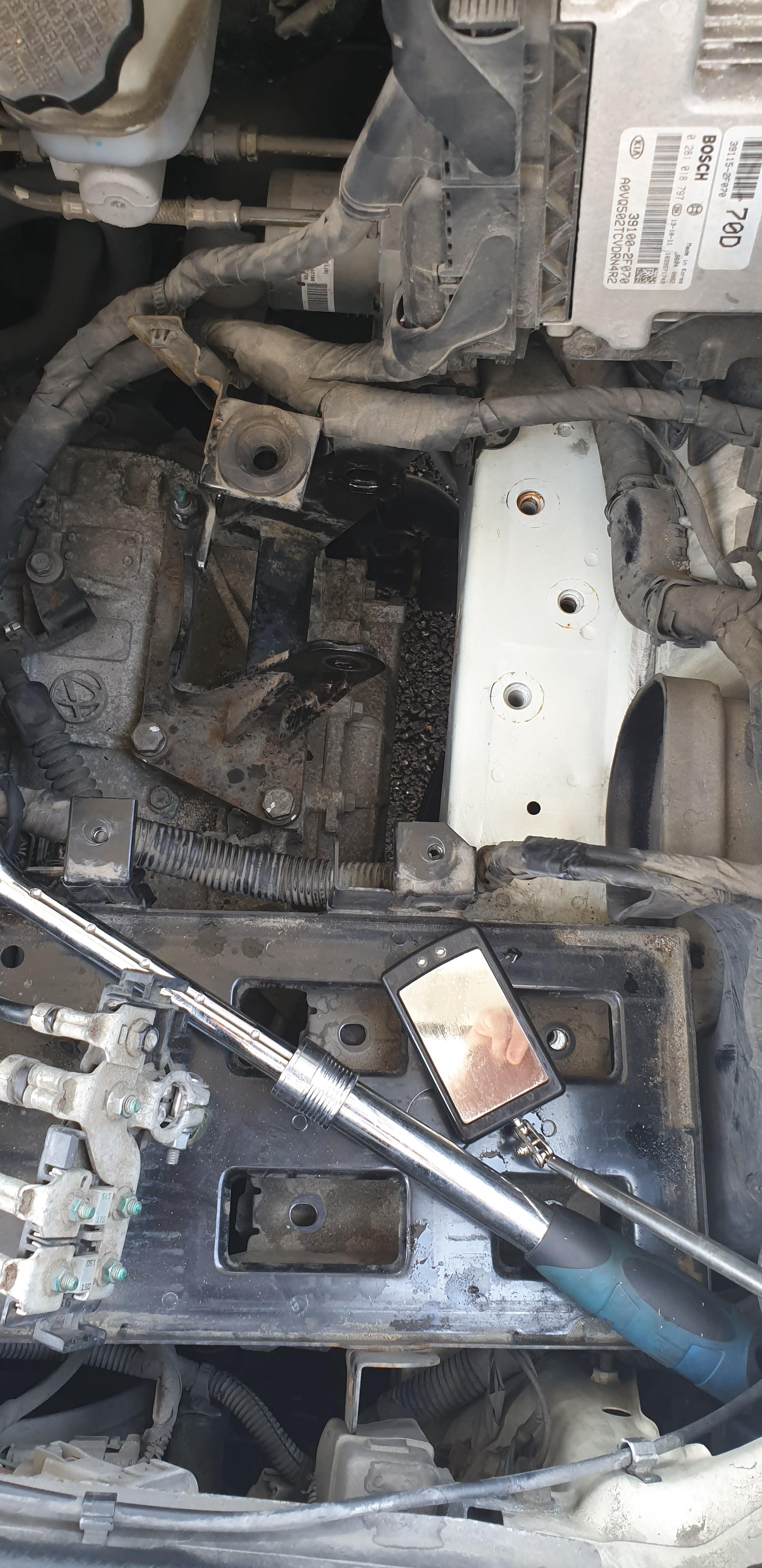 관통볼트는 라쳇으로 살짝만 조이고 미션 미미 하단을 받치고 있던 자키를 제거한 후에 정상 토크로 체결한다. 즉, 관통볼트에 정상 하중이 실려 있는 상태에서 최종 체결 토크로 조이기 위함이다. 정석으로 공차체결을 하려면 배터리를 연결하고 시동을 걸고 어쩌고 해야 하는데 귀찮아서 이렇게 했다. 정비소에서 미션 미미 공차체결을 해 주는 곳이 있으려나? 배터리 연결했다가 다시 탈거해야 하는데 이걸 정해진 공임과 시간에 해결해야 하는 입장에서 해 주기는 쉽지 않을 터이다.