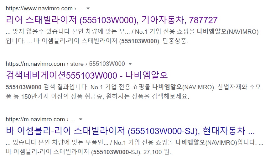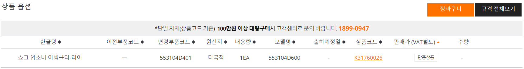 단종상품이고 변경부품코드는 553104D401로 나온다. 이 코드를 모비스에서 조회하면 전국 재고점이 300곳 넘게 조회된다.