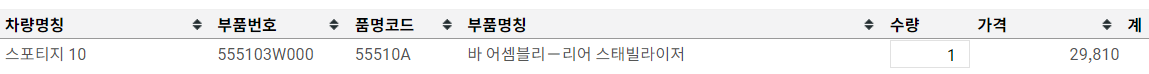 스포티지 R 11년식 차종의 부품상세검색을 통해서 리어 스태빌라이저 바 부품 정보는 아래처럼 나온다.