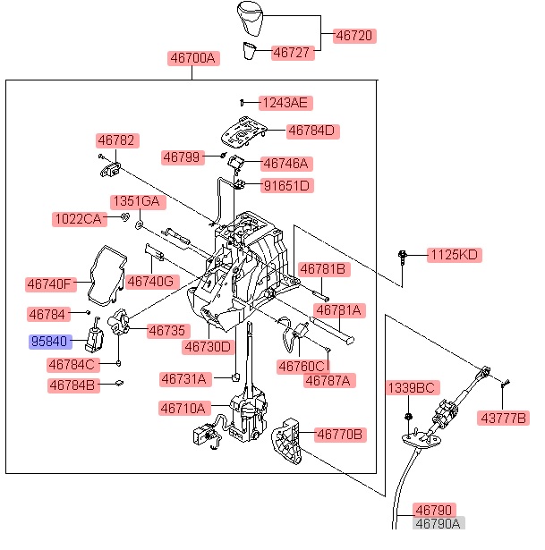 A/T 기어 레버 어셈블리 안쪽에는 여러 다양한 부품이 들어가 있다. 그중에서 쉬프트 록 솔레노이드라는 부품이 있다. 브레이크 페달이 밟혀 있지 않으면 레버 이동이 안되도록 해 주는 일종의 안전장치 중의 하나이다.