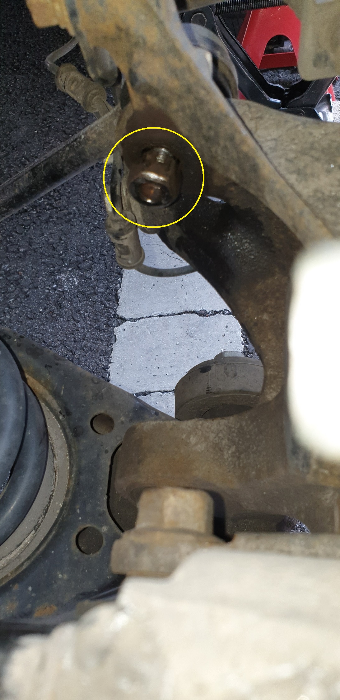 2. 일주일 전쯤에 어시스트 암 캠볼트가 고착되었는지 이미 확인했던 터라 일단 볼트 고착은 덜 염려한 상태에서 문제의 캠볼트/너트를 해체. 캠볼트는 쉽게 빠졌다.