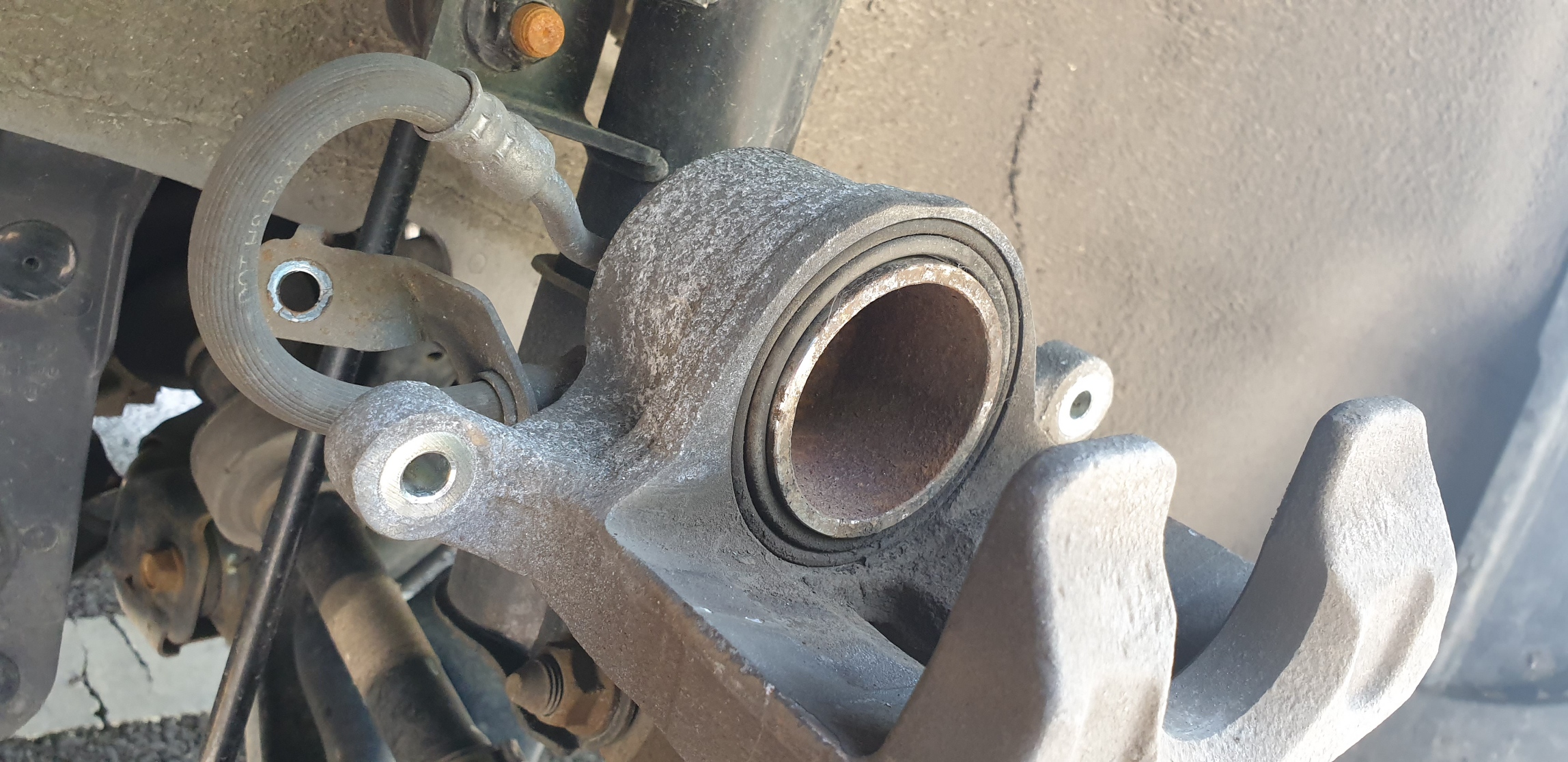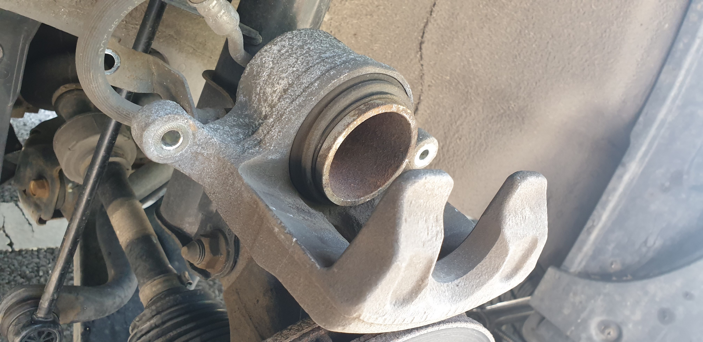 다행히 프런트 좌/우 가이드 핀 4개 모두 고착되지 않았다. 검은색 그리스가 발라져 있었다. 아마 지난 패드 교체 시에 그래도 정비사가 그리스를 발라서 끼워 놓은 것 같다.