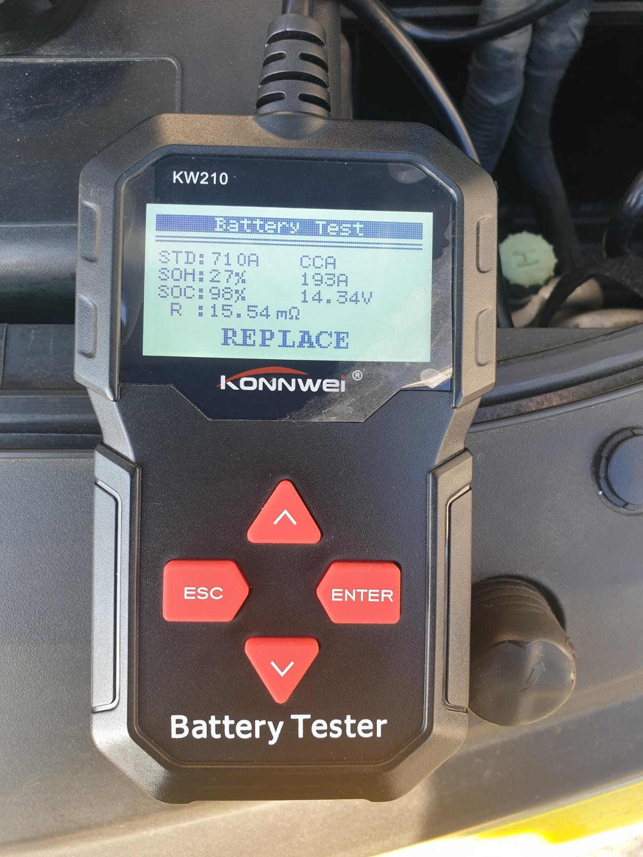 배터리 전용 테스터기로 재점검했다. 흐미 SOH가 27%, 점검 결과 REPLACE 즉, 교체하라고 나온다. ㅠㅠ.