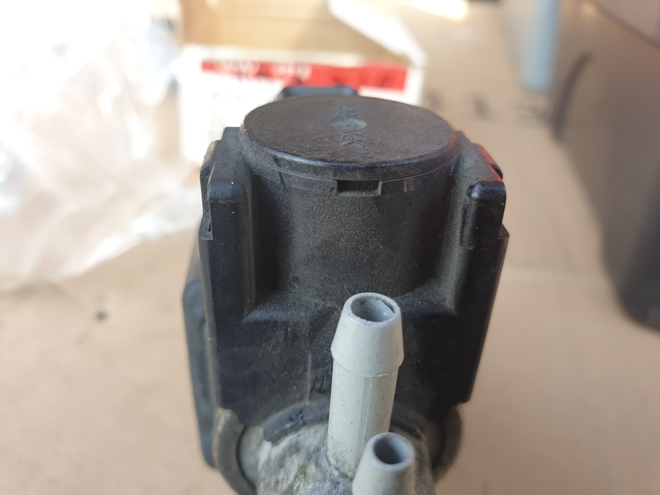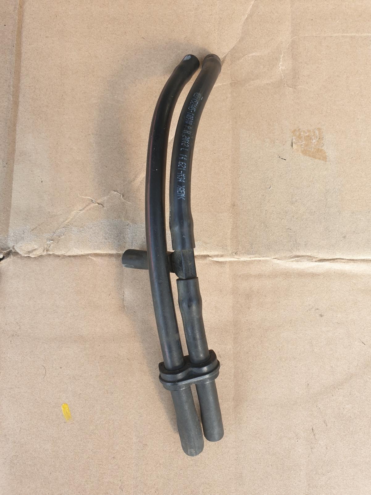 (아래 사진) 탈거한 진공 호스. 2천원대이니 밸브를 교체하고자 할 경우 이 호스도 새걸로 갈으시라. 구품 호스가 고착되어 있어 힘으로 잡아당겨도 잘 안 빠지는데 송곳이나 작은 일자 드라이버를 이용하여 호스를 빼면 된다. 이때 자칫 호스가 찢어질 수 있다. 호스는 두 가닥 모두 직경이 동일하다. 근데 밸브를 보면 꼽는 부분이 한 개는 넓고 한 개는 좁다. 아무 데나 막 꼽으면 안 된다. 분홍색 줄이 가 있는 호스가 굵은 부분에 꼽힌다.
