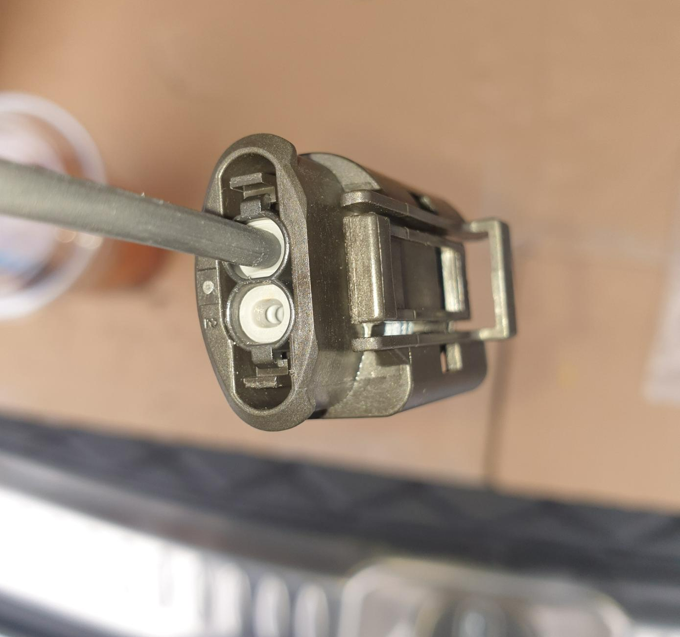 2핀 커넥터이고 배선 역시 2가닥이나 실제 알터네이터에는 배선 1가닥만 쓰인다. 커넥터 2번 구멍의 배선은 따라서 필요 없으므로 제거했다(제거하려면 전용 툴과 요령이 있어야 함. 경험이 없으면 그냥 둘 것).