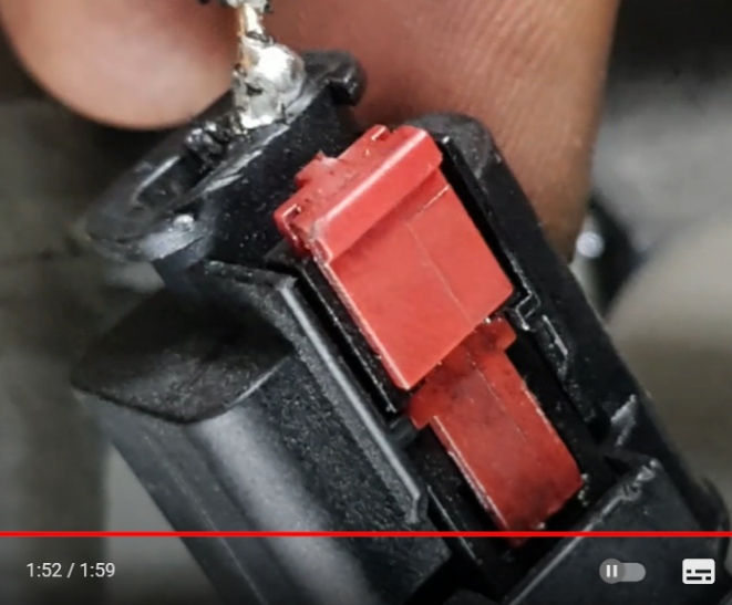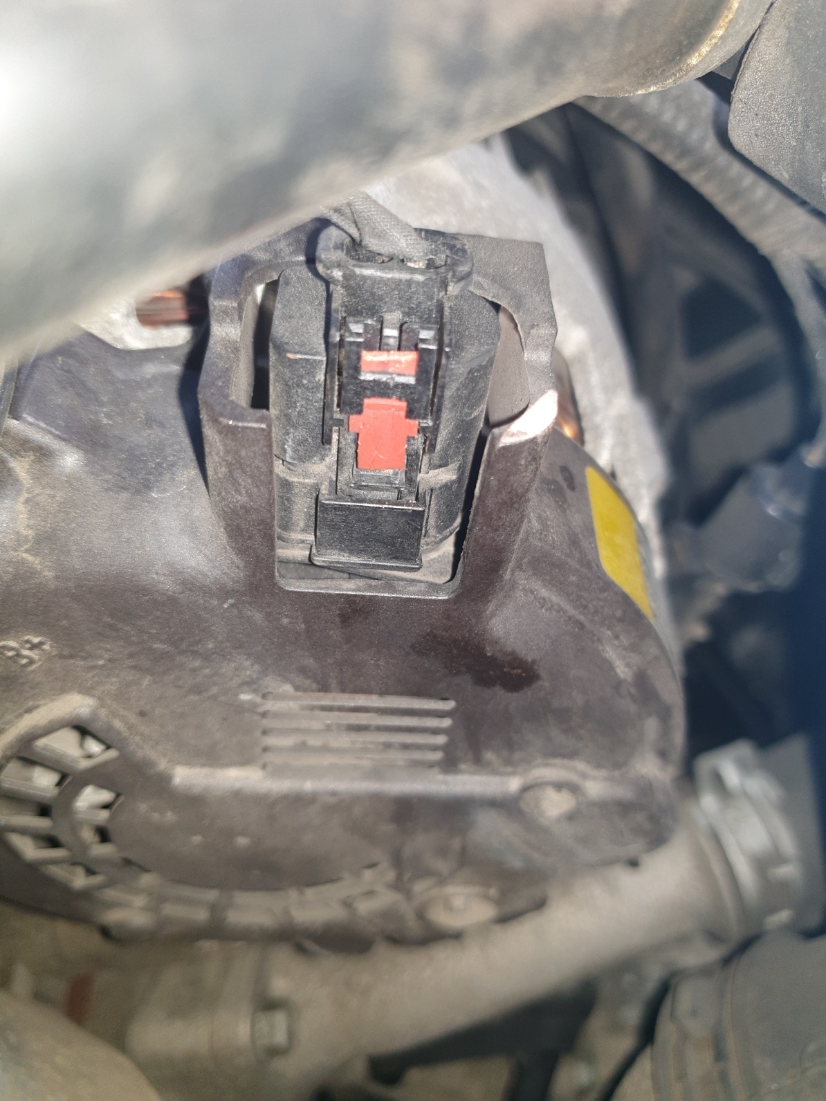 커넥터의 빨간색 클립이 1차 고정 락킹인데 저 빨간색을 위로 살짝 빼내면 1차 락킹이 해제되고 이 녀석을 손으로 꾹 누르면 2차 락킹이 해제되는데 이때 힘차게 위로 뽑으면 커넥터가 알터네이터에서 분리되는 구조이다.