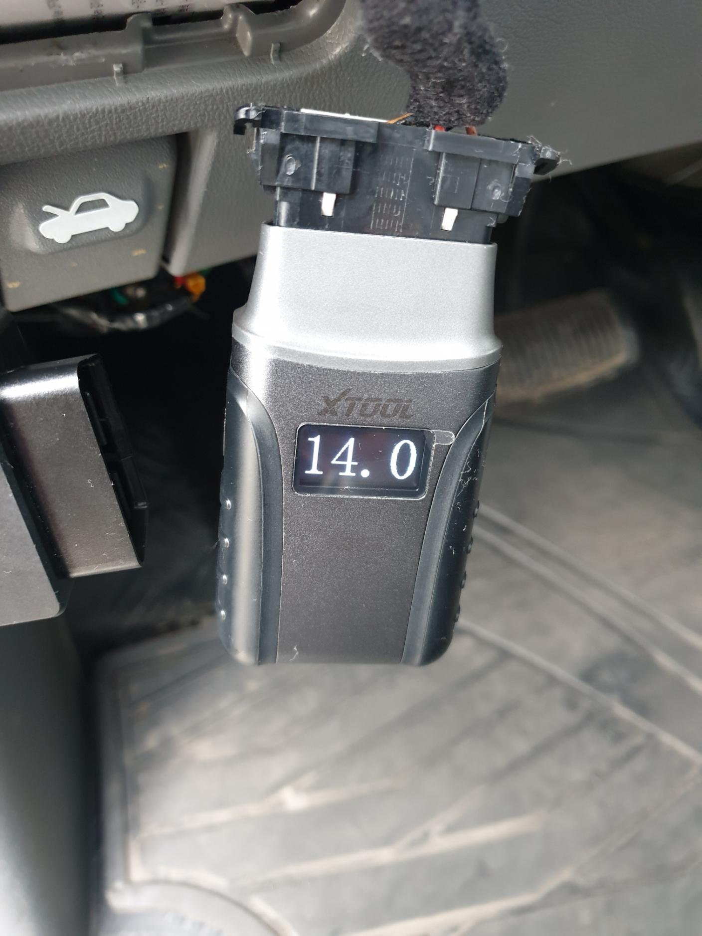 뒤 커버를 조립하기 전에 혹시 모르니 이 상태에서 배터리 연결하고 시동 걸어서 전압 확인. ㅋㅋ. 얏호~~. 바로 14V가 나오면서 알터에서 전기를 잘 생산하는군.
