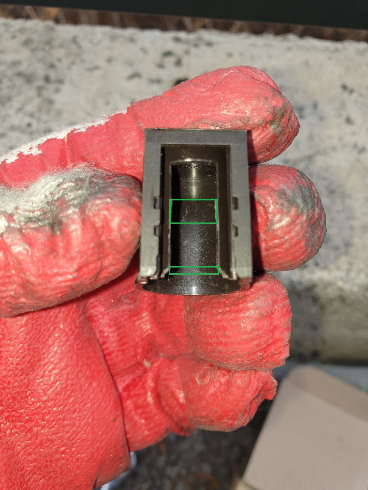 슬립 링 커버는 일부분을 절단. 녹색으로 표시한 부분을 가로막은 플라스틱을 잘라냄. 그래야 꼽을 때 튀어나온 브러쉬와 상관없이 커버가 꼽힌다. 절단한 부분이 무슨 역할을 하는 건지는 모른다. 이걸 잘라내도 커버를 자기 자리에 꼽을 때 1단 걸림, 2단 걸림까지 단단히 꼽혀서 고정된다. 커버 구조와 튀어나온 브러쉬를 보면 위/아래 브러쉬의 자리를 잡아주기 위한 역할인 듯. 근데 브러쉬는 안쪽에 스프링 장력의 힘으로 슬립 링에 밀착되기 때문에 굳이 이 부분을 잘라낸다고 해서 별 문제는 없어 보인다.