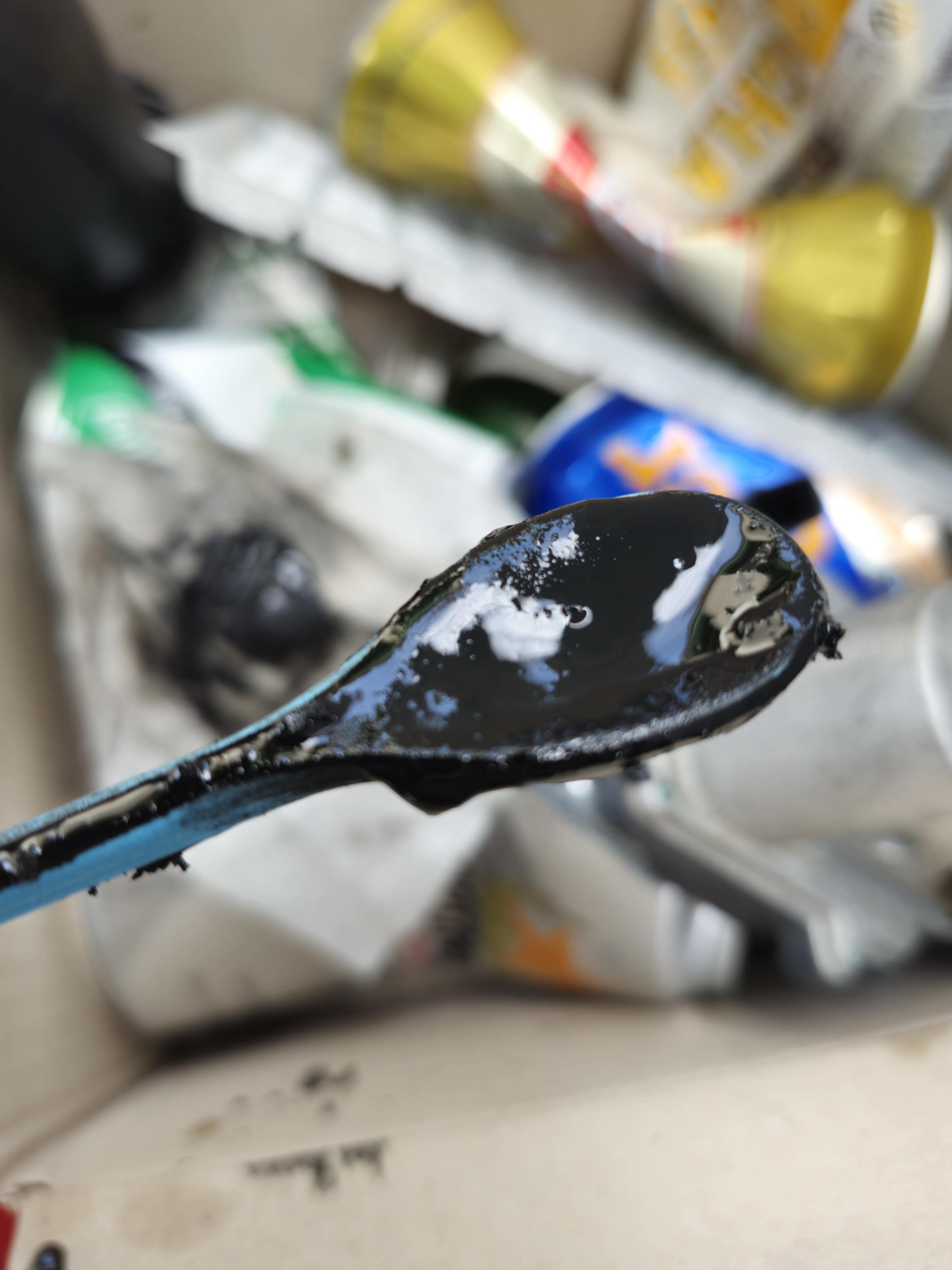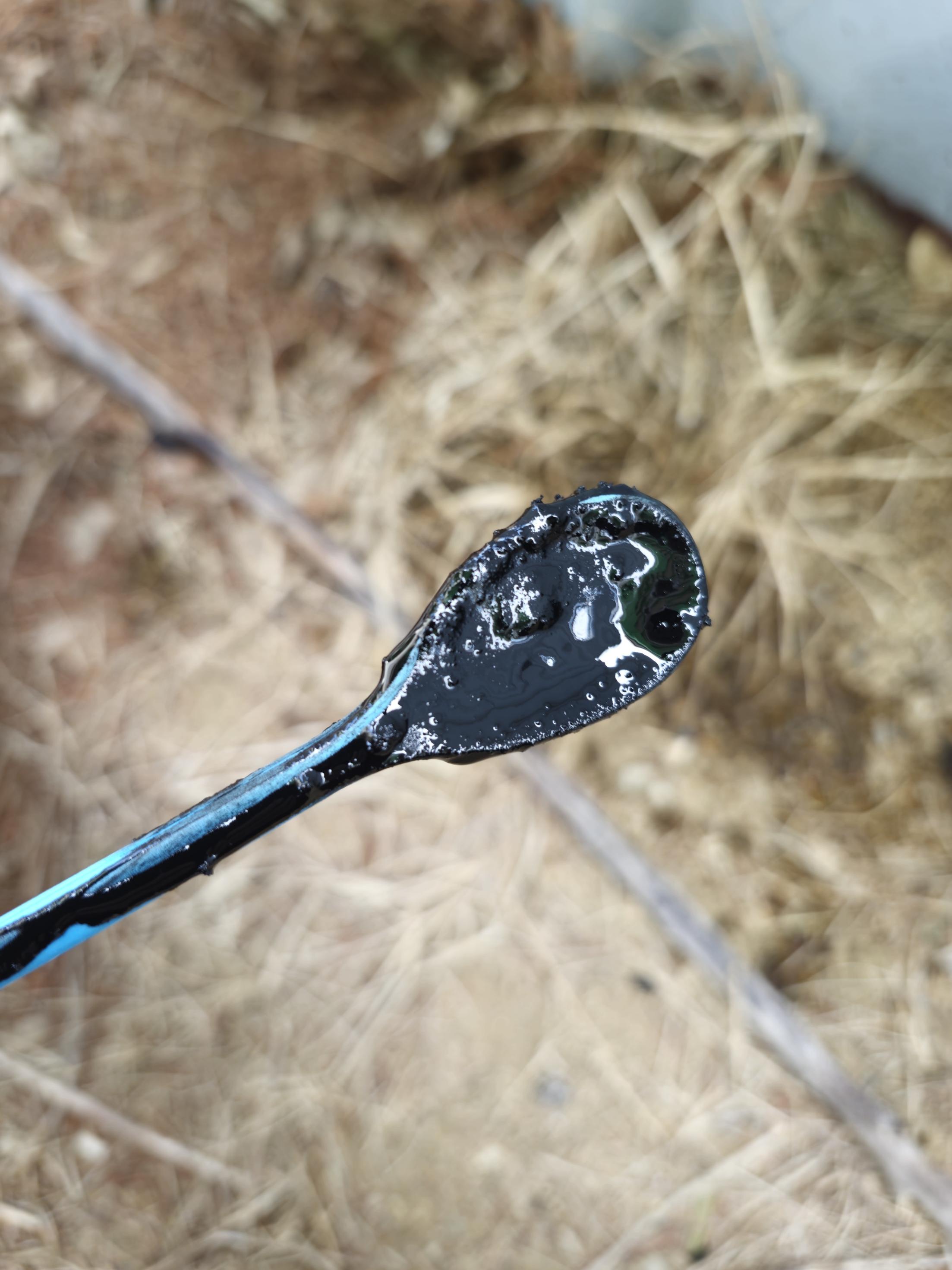 다이소에서 구입한 1천 원짜리 실리콘 재질의 스푼(길이가 대략 20cm 정도)으로 흡기 매니폴드 안쪽에서 긁어낸 카본 찌꺼기. 이 작업을 할 생각이라면 꼭 1회용 비닐장갑을 여러 장 준비하시오.