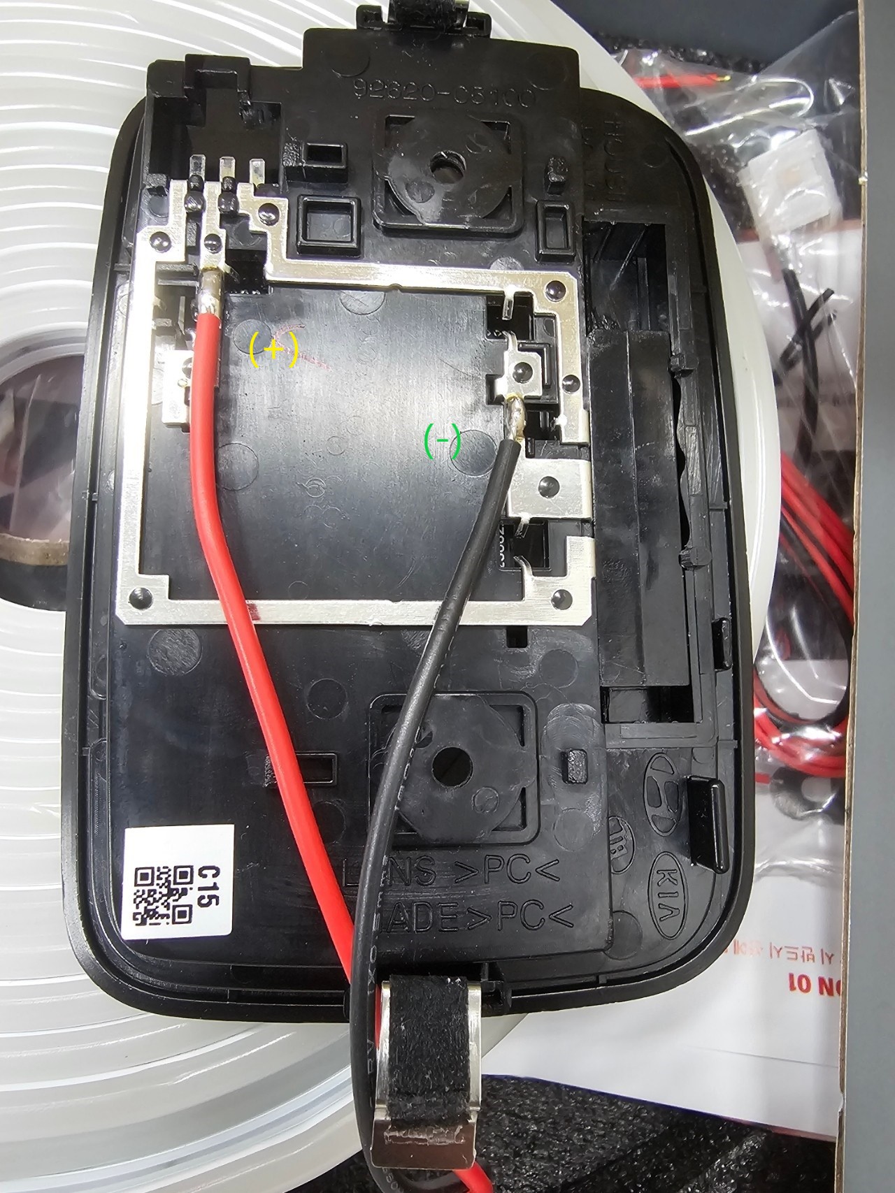 이제 차 트렁크 등을 탈거하여 배선을 납땜해 주고 LED를 웨더스트립 사이에 잘 갈무리만 해 주면 된다. 보통 트렁크 등에 납땜하지 않고 트렁크 등 배선 중간을 까서 브릿지 해 주는 방법을 가장 많이 쓰는데 후자의 방법은 애로사항이 있다. 즉 트렁크가 열리면 식빵등이 항상 켜진다는 거다. 물론 트렁크 래치에 카라비너 같을 걸 끼워서 등을 끌 수 있지만 불편하잖아. 그래서 트렁크 등을 탈거해서 스위치와 연결된 안쪽 금속 부분에 납땜을 해 주면 트렁크 등 스위치와 연동되어 강제 ON/트렁크 오픈 시 ON, 트렁크 닫히면 OFF/강제 OFF 이렇게 사용할 수 있다는 장점이 있다.