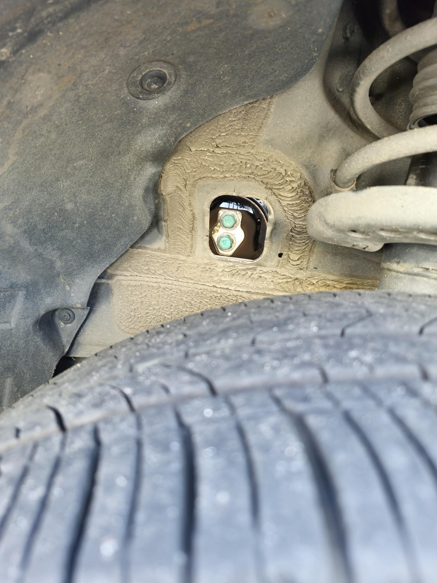 9. 차를 리프트 했기 때문에 쇼바가 아래로 축 처지면서 휠 하우스와 타이어 사이에 공간이 꽤 넓게 확보된다. 사실 타이어를 탈거하면 작업이 더 편하긴 한데 굳이 힘들게 타이어까지 탈거할 필요는 없다.