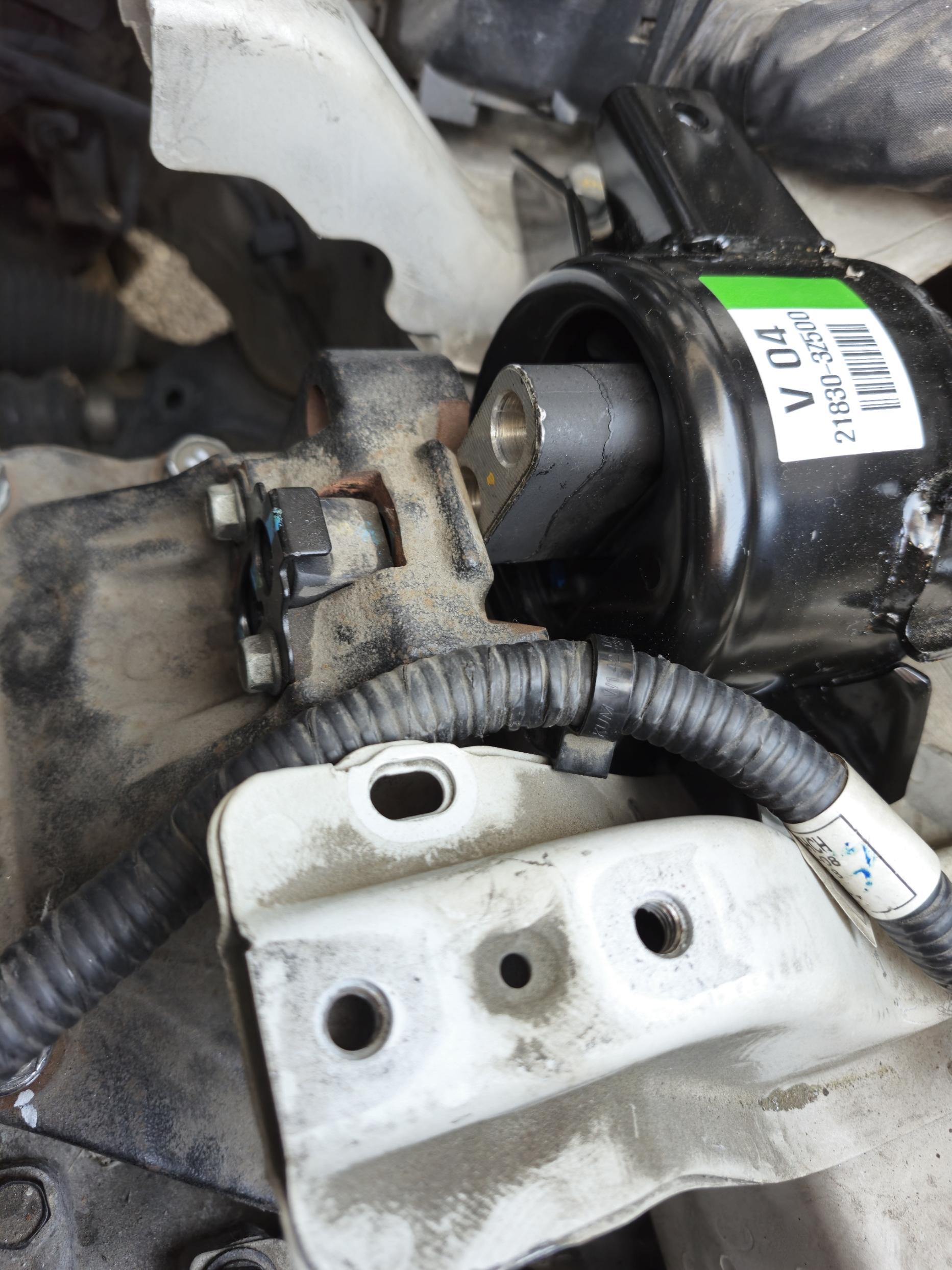 서포트 브라켓이 다시 장착된 시점에 새 미미와 서포트 브라켓 높낮이가 꽤 차이가 난다. 관통볼트를 체결하려면 미션을 더 올려주어야 한다.