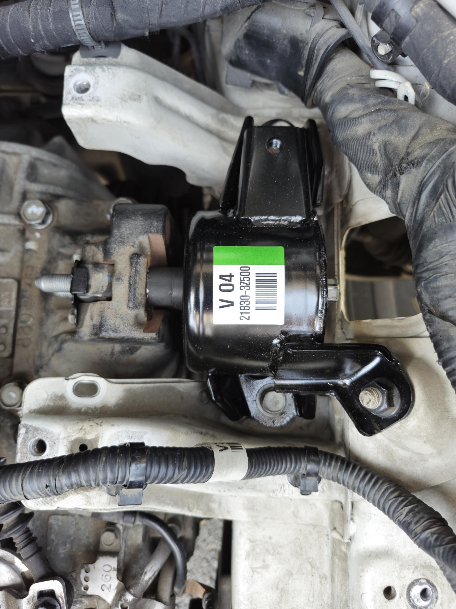 나의 경우 브라켓이 볼트 구멍은 미션 위에 안착은 되었는데 구멍이 일치하지 않아서 미션 높낮이를 조정해서 정렬시켜 주었다. 브라켓 볼트 구멍 4개가 모두 잘 정렬된 상태에서 손으로 가체결하고 그 후 공구로 페인트 마커로 미리 표시해 둔 기준점 위치만큼 체결해 준다. 오버 토크를 인지하였기에 기준점보다 좀 덜 조였다. 토크렌치로 약 8 kgf.m로 체결 완료.
