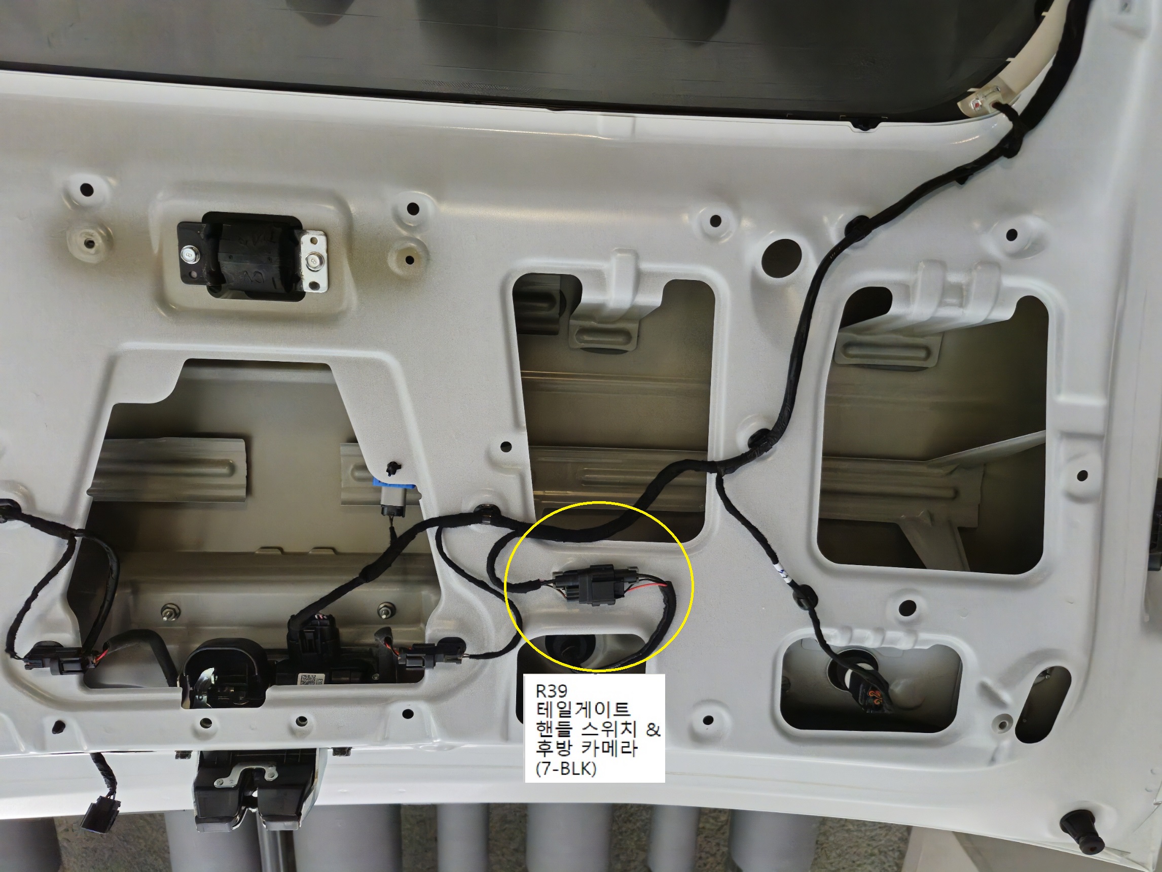 2. 추가 장착 스위치에 연결해야 할 순정 커넥터 위치 확인. R39 커넥터(7핀 커넥터)이다. 정비지침서 사진에는 커넥터가 회색으로 나와 있는데 검은색 커넥터이다.