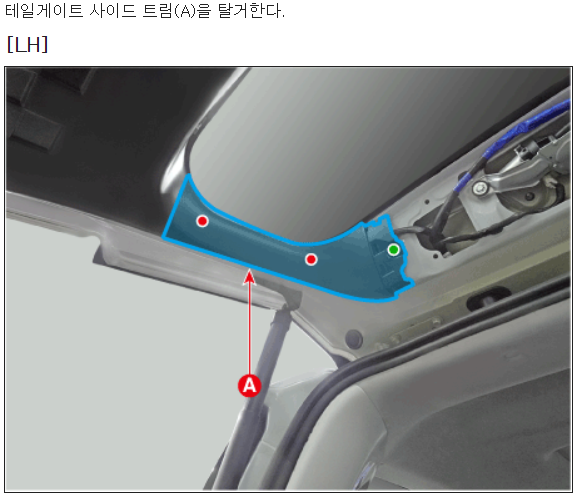 1. 테일게이트 내장 플라스틱 트림을 모두 탈거한다.