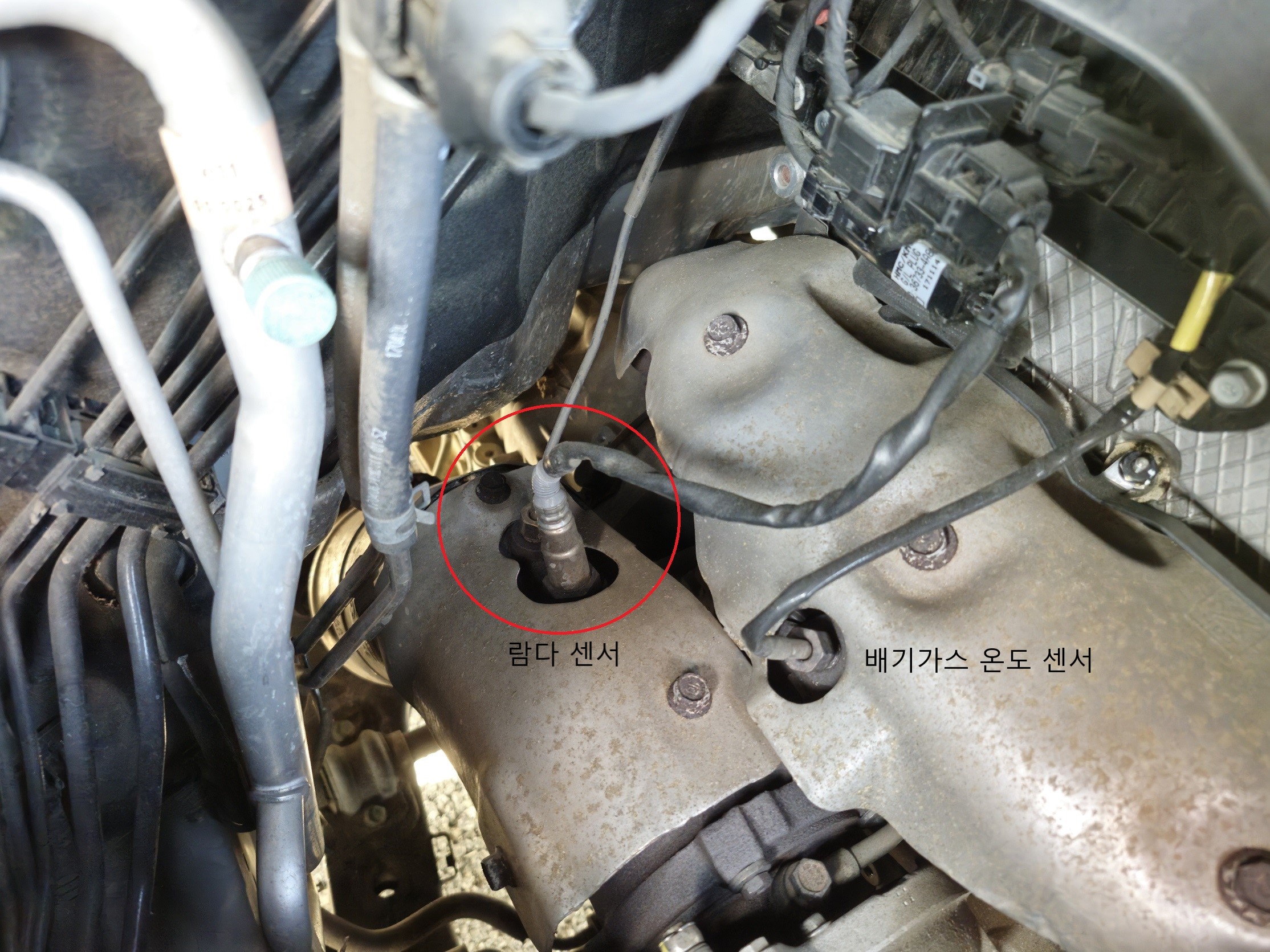 스캐너로 람다 센서 학습값을 리셋해 주는 것으로 작업 완료.