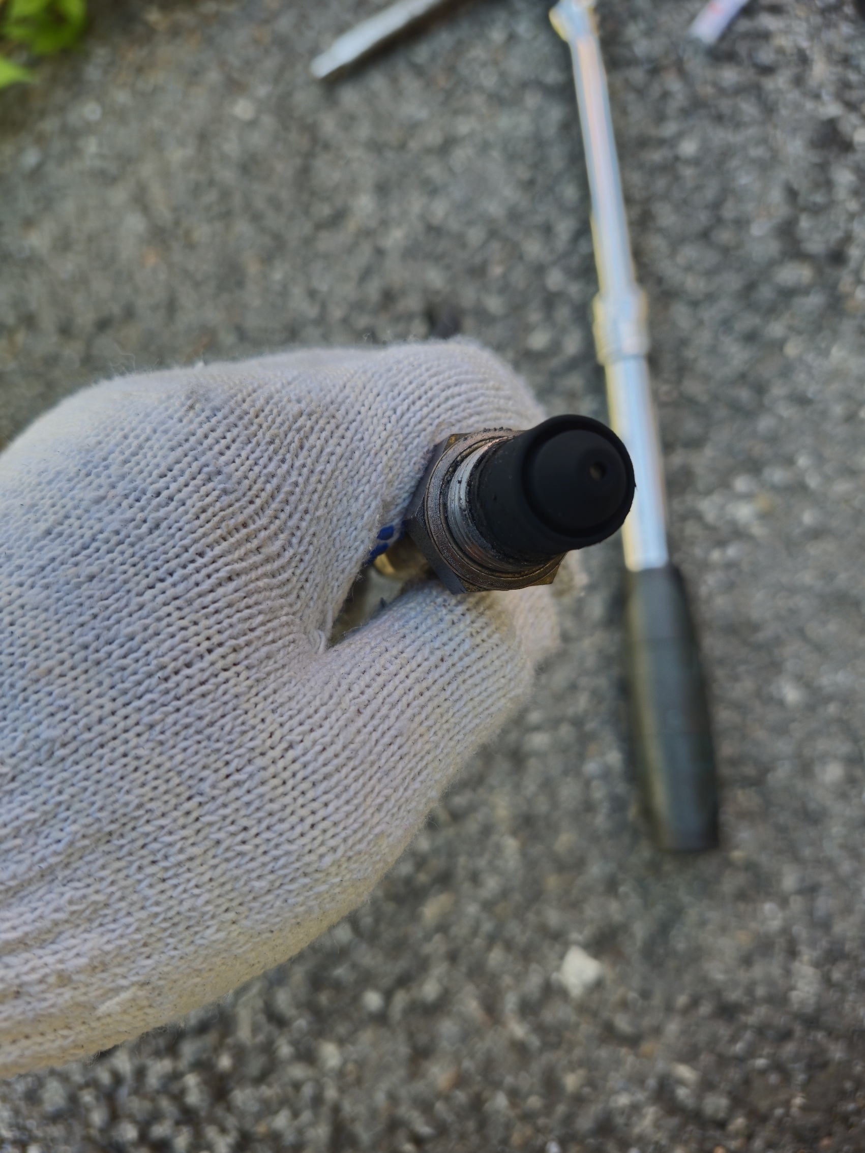 i40 람다 센서의 오염은 건조한 흑색 카본 가루였다면 이 녀석은 약간 끈적끈적한 흑색 카본으로 뒤덮여 있더이다.