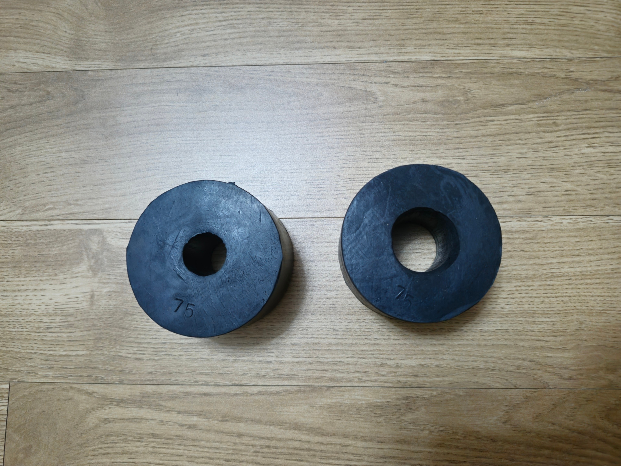 외경이 50mm 정도면 좋을 듯한데 찾지를 못했다. 외경이 크면 클수록 방진 효과가 좋겠지만 너무 크면 핸들 샤프트 주변 다른 부품과 간섭이 발생할 수 있으므로 적정 사이즈여야 한다. 75파이 짜리로 다른 부품과 간섭이 있을지 없을지 모르겠다. 간섭이 발생하면 테두리를 잘라내야지 뭐. ㅎㅎ.