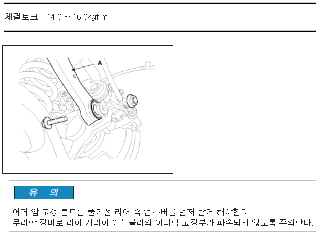 서스펜션 부품 교체 중에서 리어 어퍼 암은 난이도가 그나마 쉬운 편에 속한다.