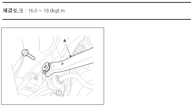 6. 볼트를 풀어 서브 프레임에서 리어 어퍼 암을 탈거한다. 체결 토크가 상당하므로 롱 복스대나 강크한 임팩 렌치를 사용한다.