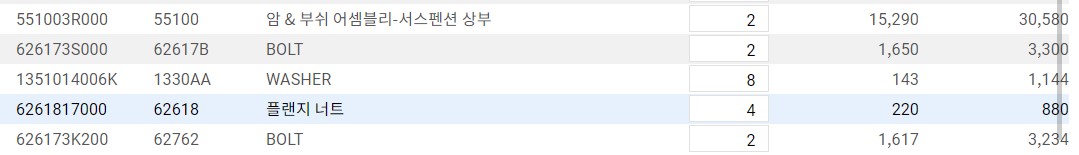 어퍼 암은 좌/우 구분 없다. 개당 15,290원. 나머지 부품들은 볼트/너트/와셔인데 기존 걸 재사용하거나 아니면 깔끔하게 신품으로 사용하거나 개취임.