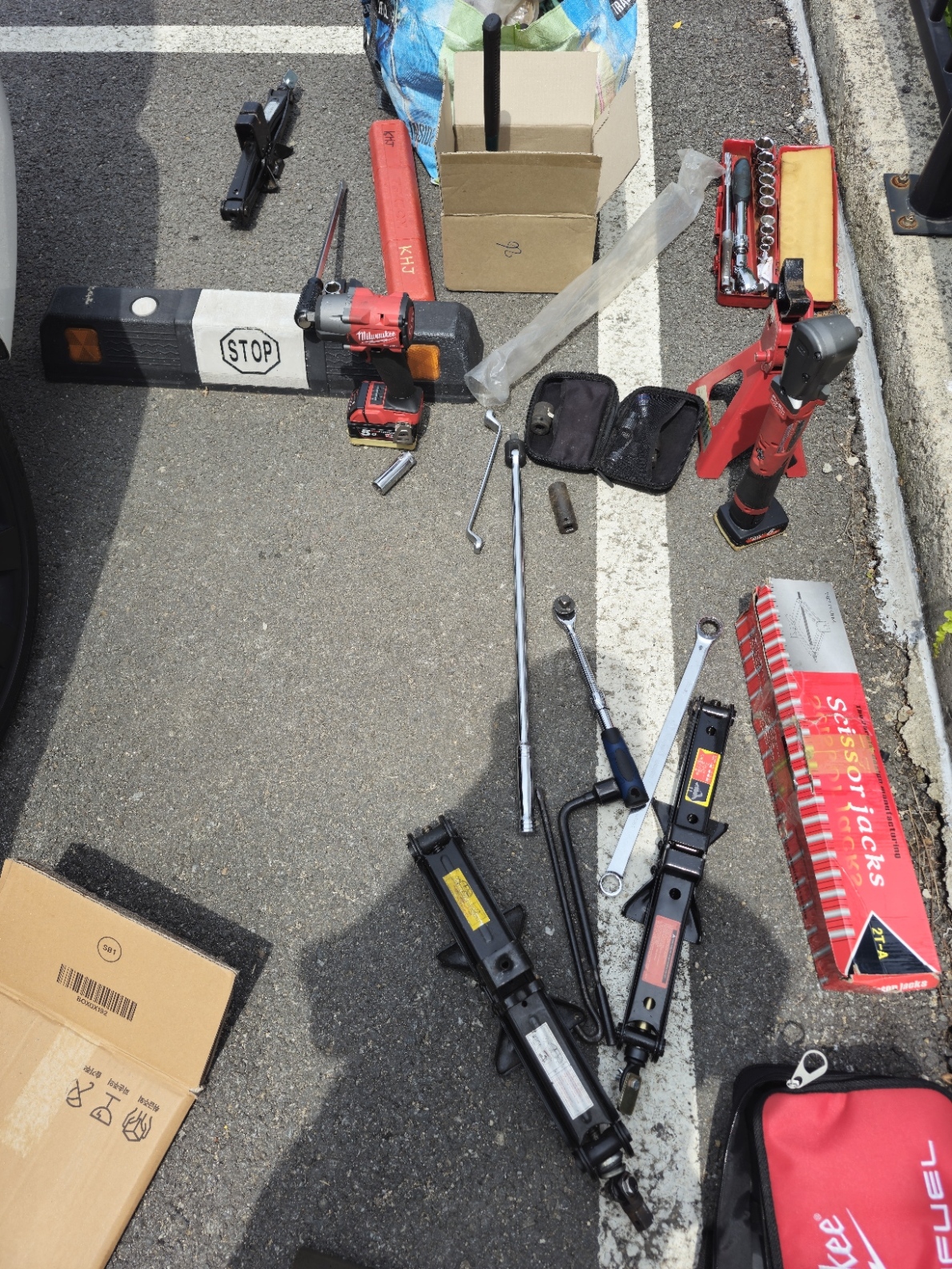 볼트 풀기 위해서 동원된 공구들. 이렇게 사용했음에도 실패했다니 원통하군.