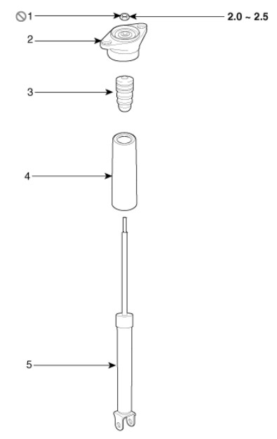 *맨 위 볼트는 리어 어퍼 암의 서브 프레임 측 고정 볼트이다.