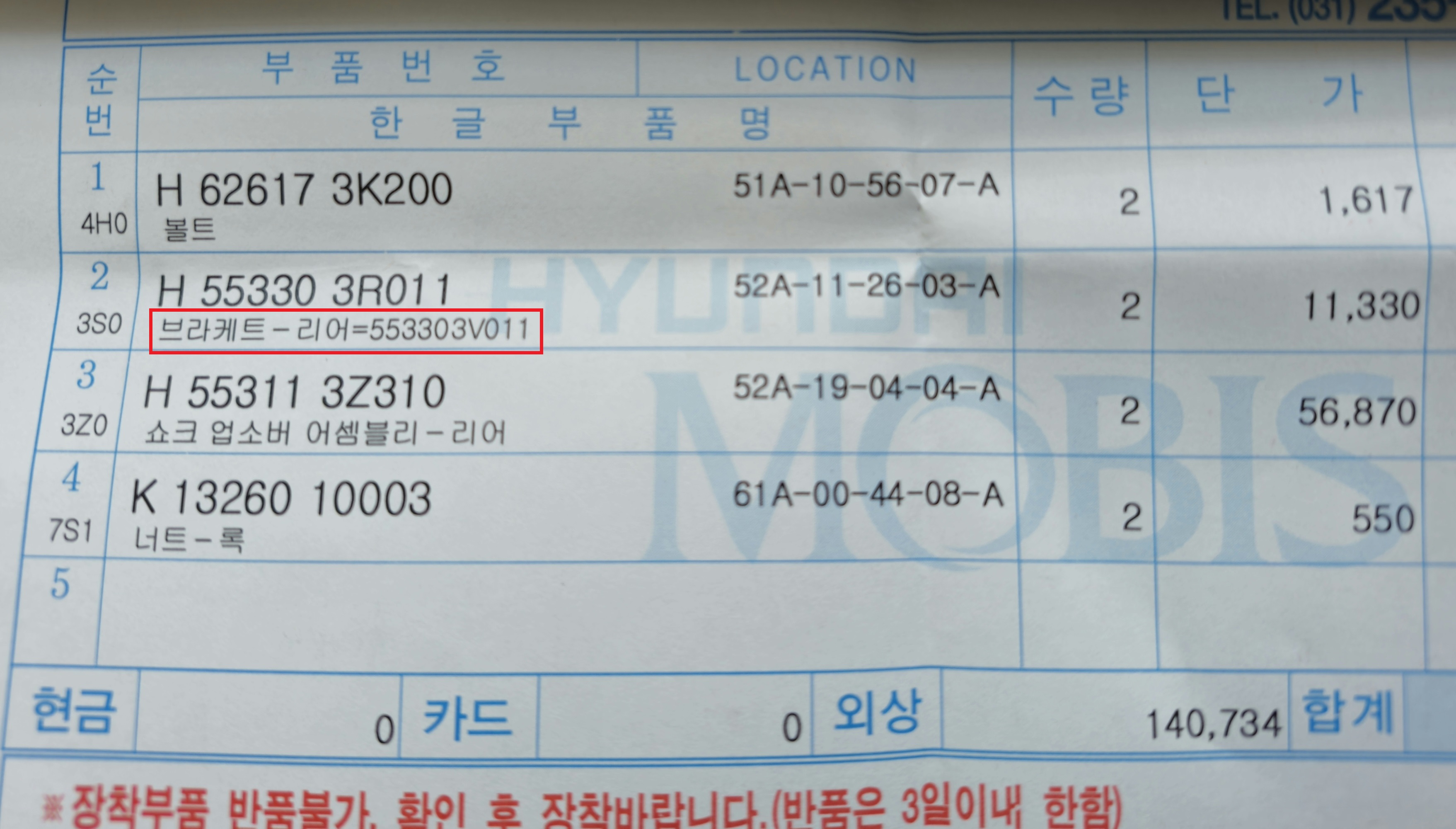 모비스의 이상한 허튼짓을 또 확인. 55330-3V011 품번이 내 차 WPC로 확인된 품번인데, 자료 검색 중 55330-3R011이 동일한 호환품이고 가격 또한 몇 천원 저렴해서 3R011로 구입했지. 근데 모비스 부품대리점 명세표에 보시다시피 3V011과 동일한 부품이라고 나와있다. 근데 가격은 3V011이 더 비싸. 이게 뭐 하는 짓거리야 도대체?