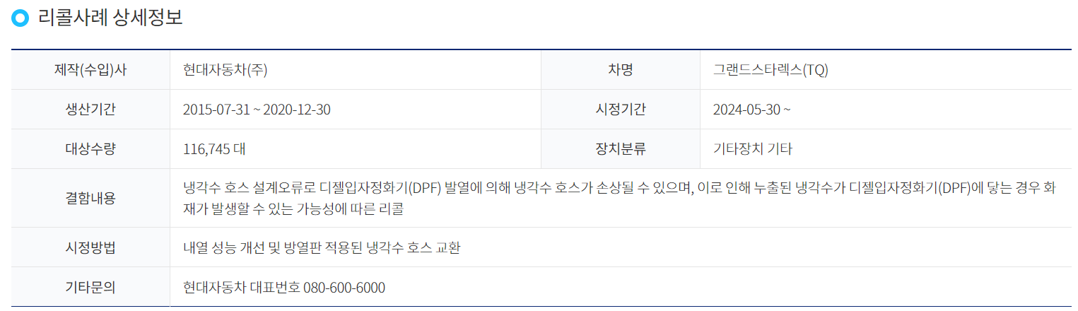그랜드 스타렉스 - 냉각수 호스 관련 리콜